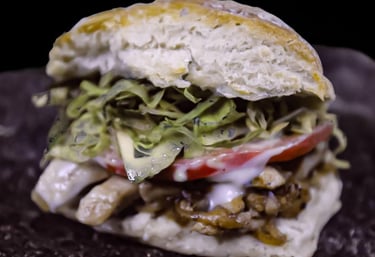 CEBOLLA CARAMELIZADA - QUESO CHEDDAR Y TOCINO.
